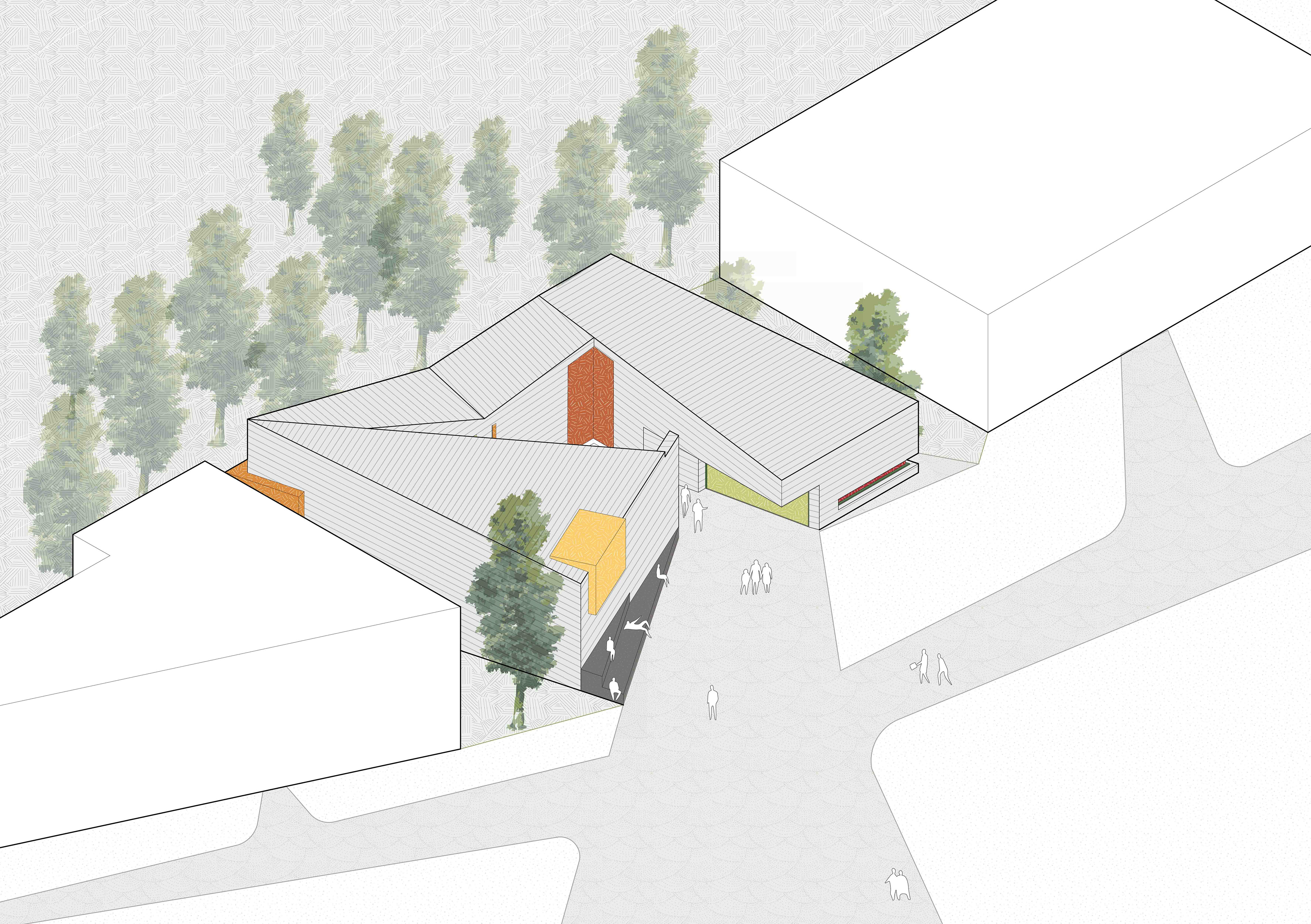 From Fala Atelier, the project borrows an attitude of playfulness and a willingness to experiment with form. The shifting geometry, chromatic glass, and layered perspectives echo Fala’s approach to ambiguity and delight. This influence encouraged us to treat the pavilion as an exploration rather than a fixed solution, allowing each element to feel both precise and open to interpretation.