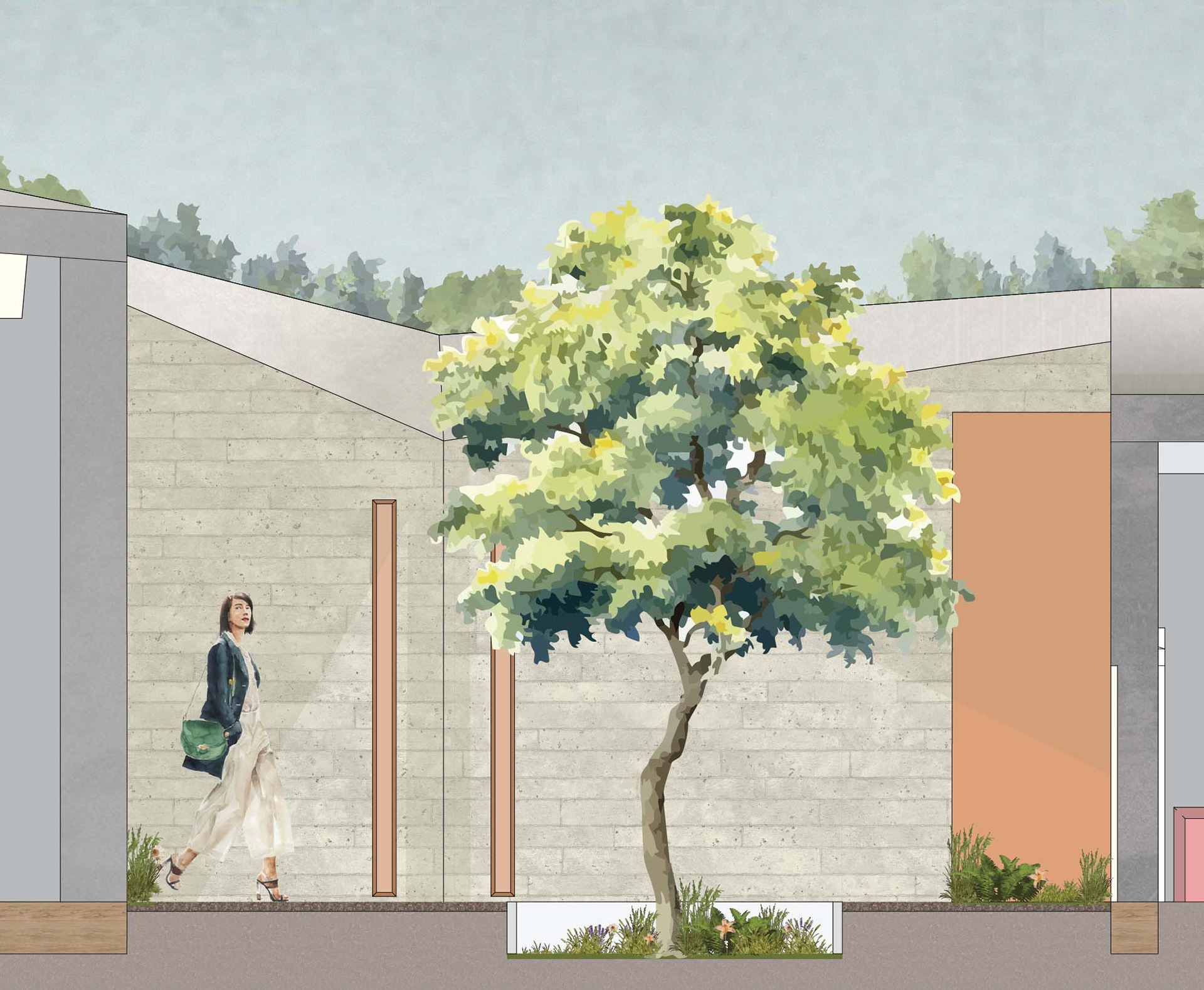 The design draws inspiration from the poetic rationality of Álvaro Siza, whose architecture embraces restraint and sensitivity to context. Like Siza’s work, the pavilion explores proportion and material honesty, using simplicity as a means to achieve depth. Each detail is considered to support the experience of light and texture, allowing the structure itself to define the emotional tone of the space.